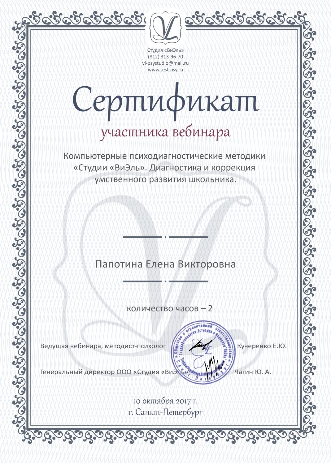 | 7. Вебинар "Диагностика и коррекция умственного развития школьника" 2 часа, 10 октября 2017 г. |