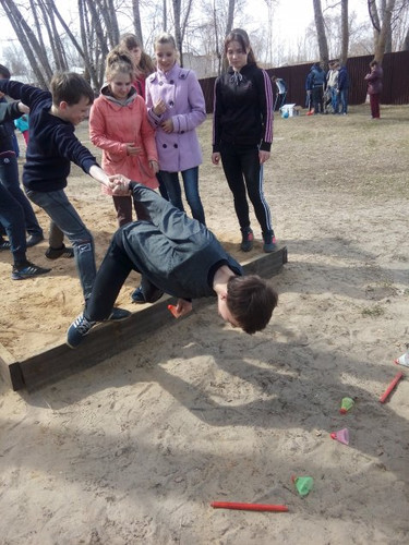 Команда находится на ограниченном «острове». Задача: достать необходимые предметы, расположенные за пределами «острова» на разном от него расстоянии. Главное требование: касаться земли вне «острова» нельзя.